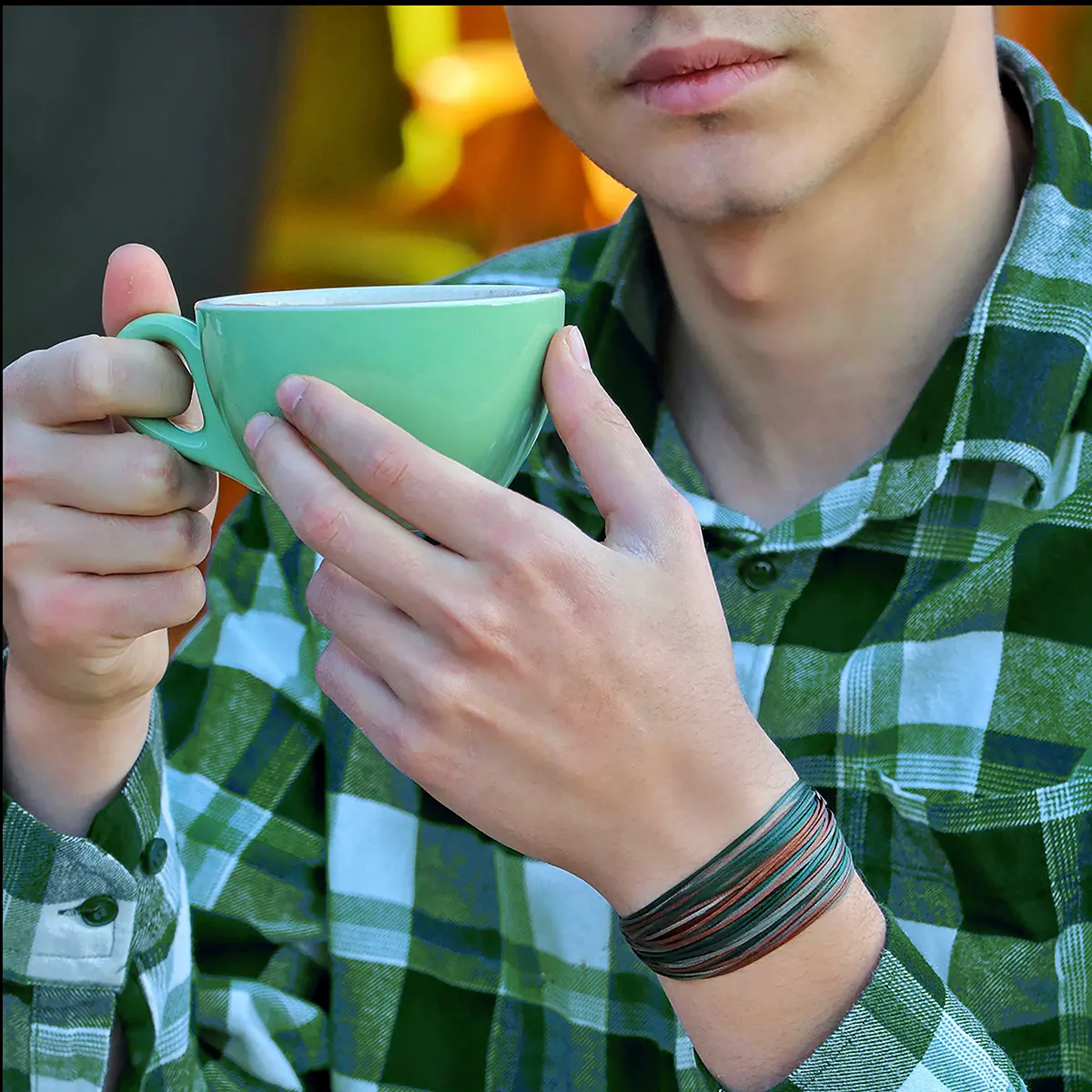 دستبند صلح و دوستی شب جنگل کد KVW-027 تداعی گر جنگلِ افسونگری است که شالی سیاه بر خود پیچیده باشد. سبزی تیره با همراهی نورِ نقره گونِ ماه و قهوه ای های تیره. تو گویی چراغِ جنگل خاموش شده باشد و سایه ای تاریک بر رنگ های دستبند صلح و دوستی جنگل پاشیده باشد، دل فریب و رازانگیز. و هارمونی رنگهای دستبند صلح و دوستی شب جنگل کد KVW-027 القاء گر صلحِ دل انگیز اجزاء طبیعت است.