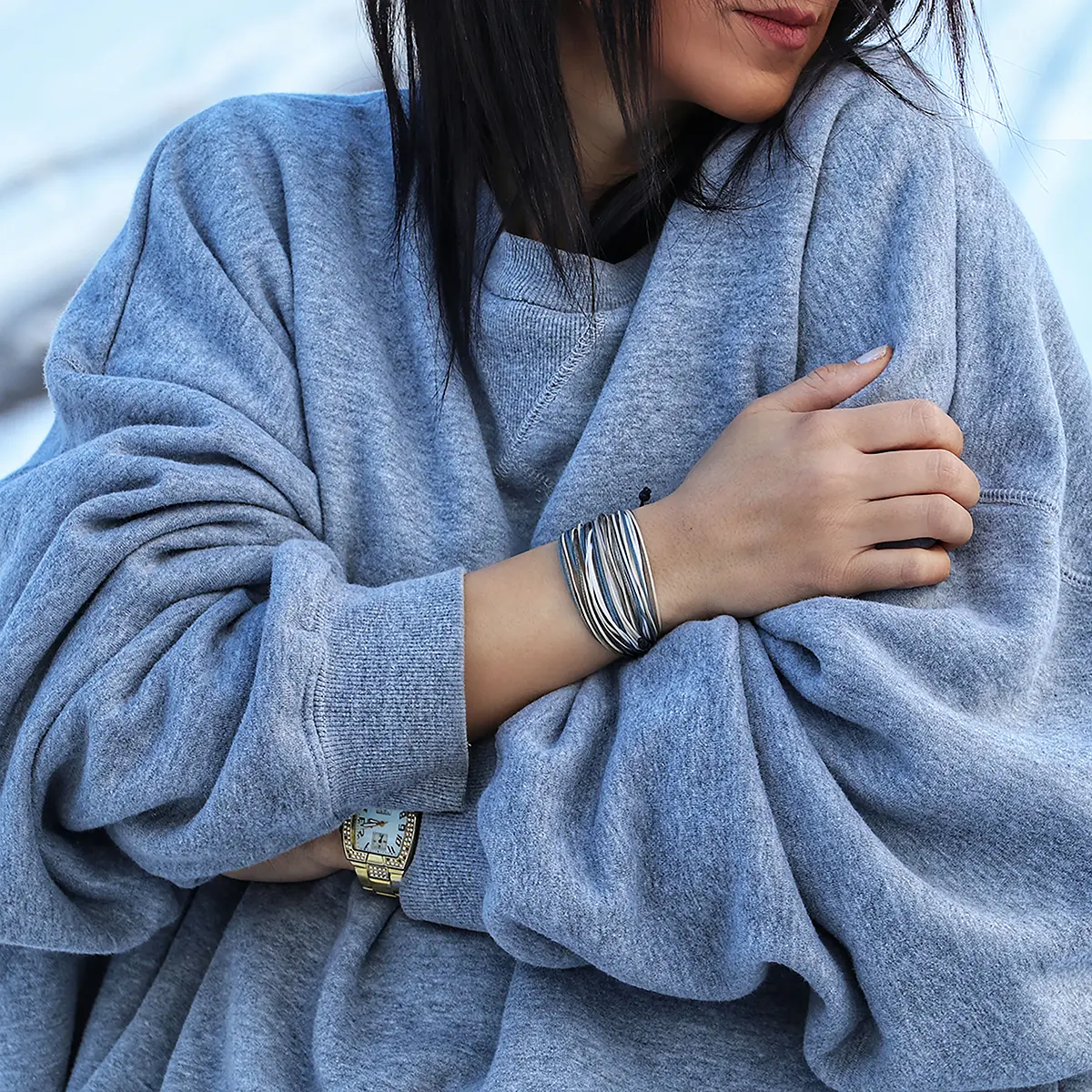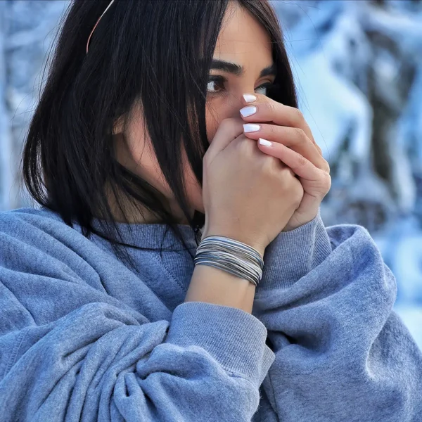دستبند صلح و دوستی زمستان کد KVW-025، دستبند دست ساز با نمادپردازی فصل زمستان است. زمستان نماد دوره کهنسالی است. دوره سکون و قرار. زمانی که دست از آرزوهای رنگ رنگ شُسته و به آنچه در دوره های قبل اندوخته ایم بسنده می کنیم. در معنایی عام تر نماد صلح درون و خلوت با خود است. زمان روبرو با خود نشستن و عریانی روح است. از این روی سراسر خاکستری است. فارغ از تلاطم های رنگارنگ سایر فصول. سرمای حاکم بر این فصل در دستبند صلح و دوستی زمستان کد KVW-025 با بکارگیری رنگهای خنثی و سرد خاکستری و طوسی بازنمایی شده است.